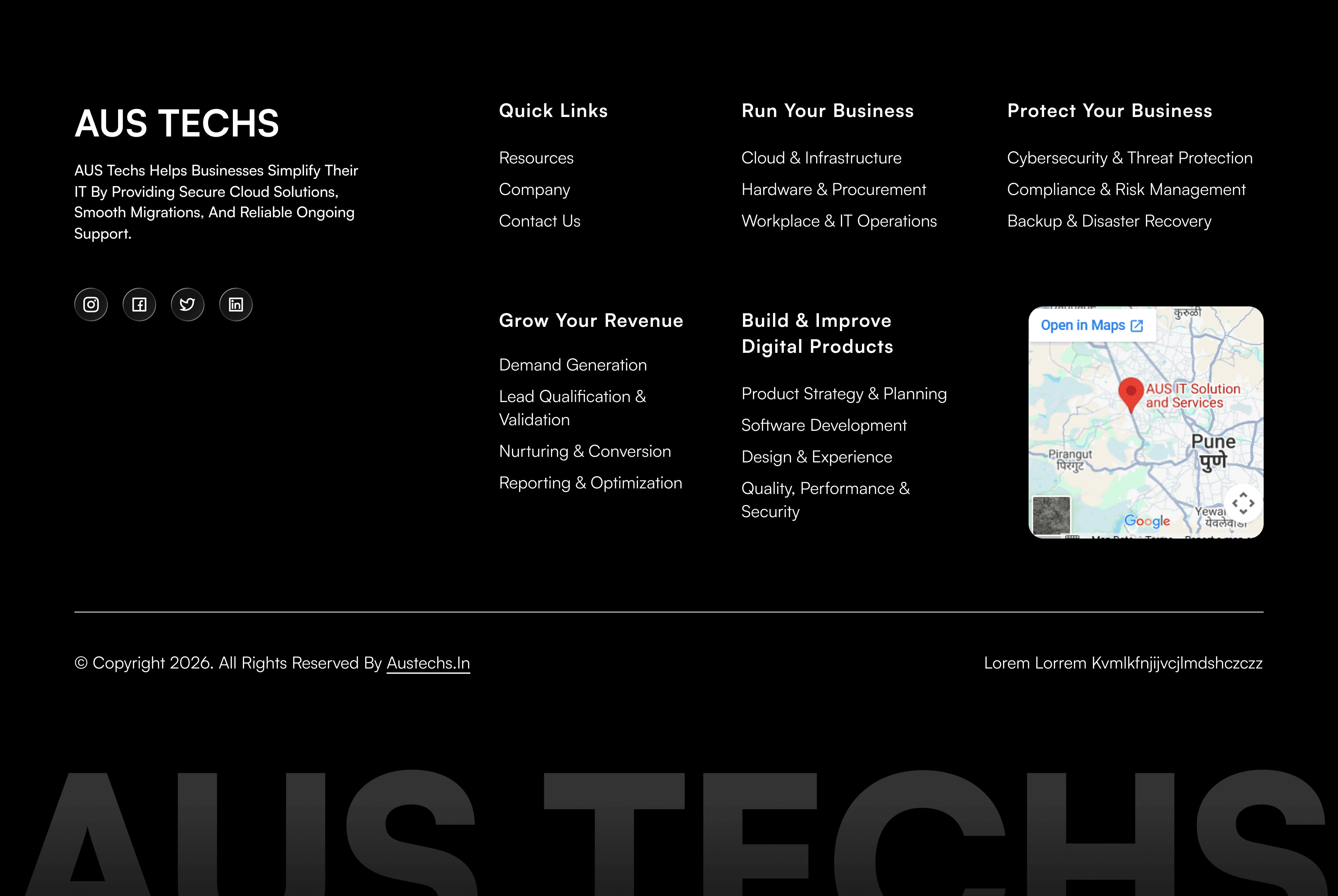 A modern, conversion-focused website that boosts lead generation, builds trust with IT decision-makers, improves user engagement, and supports AUS Tech’s growth across cloud, security, development, and B2B services.