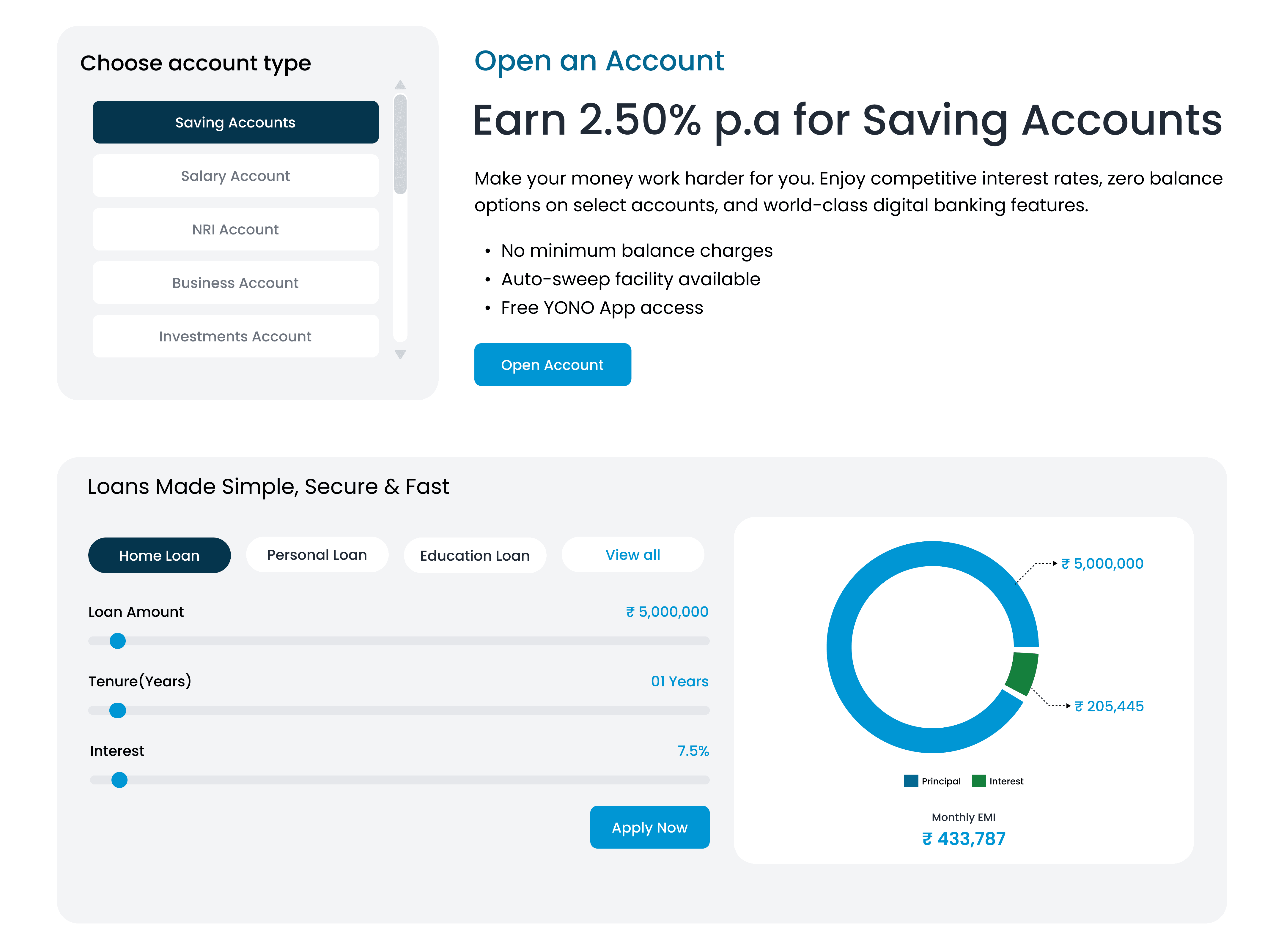 This project focuses on redesigning the SBI website to simplify navigation, reduce information overload, and improve overall user experience. The goal was to restructure complex banking categories into clear, intuitive sections for Personal, NRI, Business, Agriculture & Rural, and International Banking users. By adopting a clean, minimal design approach inspired by modern public-sector banks, the redesign makes key services easier to find, faster to access, and more user-friendly across devices.